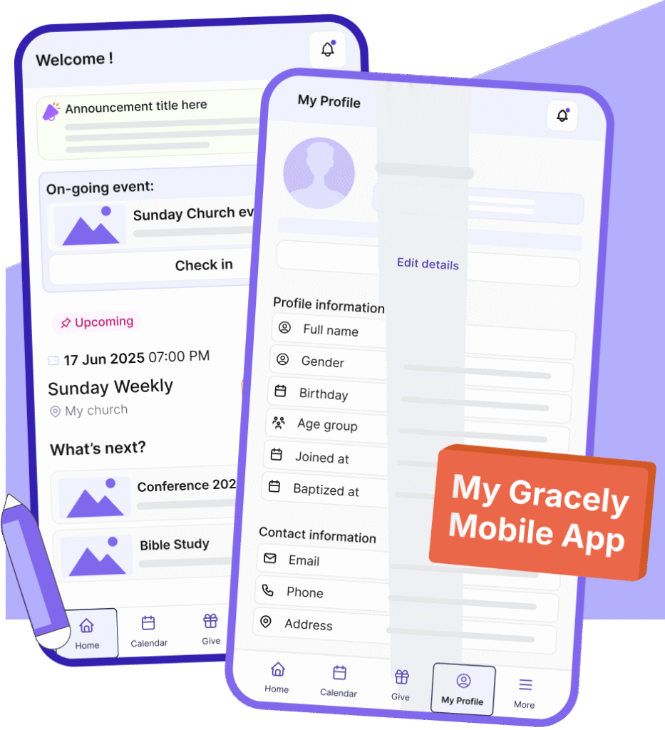 Many churches struggle with low engagement, missed communication, and complicated systems that require too much admin effort. My Gracely solves this by giving your members a beautiful and intuitive mobile experience that connects them to everything that matters most in your church.